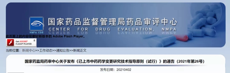 • CDE:已上市中藥藥學變更研究技術指導原則(試行)發布